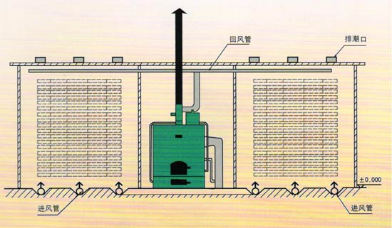熱風(fēng)式干燥設(shè)備工作原理是利用燃燒產(chǎn)生的熱能,加熱窯內(nèi)的空氣,由熱風(fēng)爐頂部主風(fēng)機(jī)將窯內(nèi)的空氣通過管道吸入爐體,將空氣加熱。再通過管道,送入窯內(nèi),由窯內(nèi)的循環(huán)風(fēng)機(jī)不斷的循環(huán)對窯內(nèi)的木材均勻加熱。木材干燥過程中如需要蒸汽,可由熱風(fēng)爐內(nèi)的蒸汽發(fā)生器提供,如果是一爐兩房或多房時(shí),管道上裝有插閥,通過插閥的調(diào)節(jié)來控制窯內(nèi)的溫度。在干燥的過程中,由于木材要進(jìn)行排濕,在窯頂上留有排濕孔(根據(jù)地區(qū)而定)和裝有抽濕機(jī),用來調(diào)節(jié)排濕的快慢.